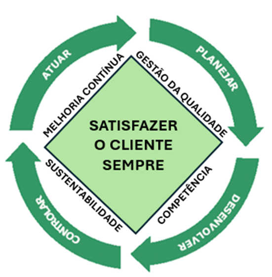Priorizamos a melhoria contínua, focamos na prevenção da poluição e na gestão eficiente dos resíduos, com o objetivo de “Satisfazer o cliente sempre” e atingir o zero defeito. Investimos na capacitação, no engajamento dos colaboradores e na comunicação transparente, de forma a promover práticas sustentáveis em toda a cadeia de valor para atender aos requisitos legais na perpetuação de longo prazo do negócio.
